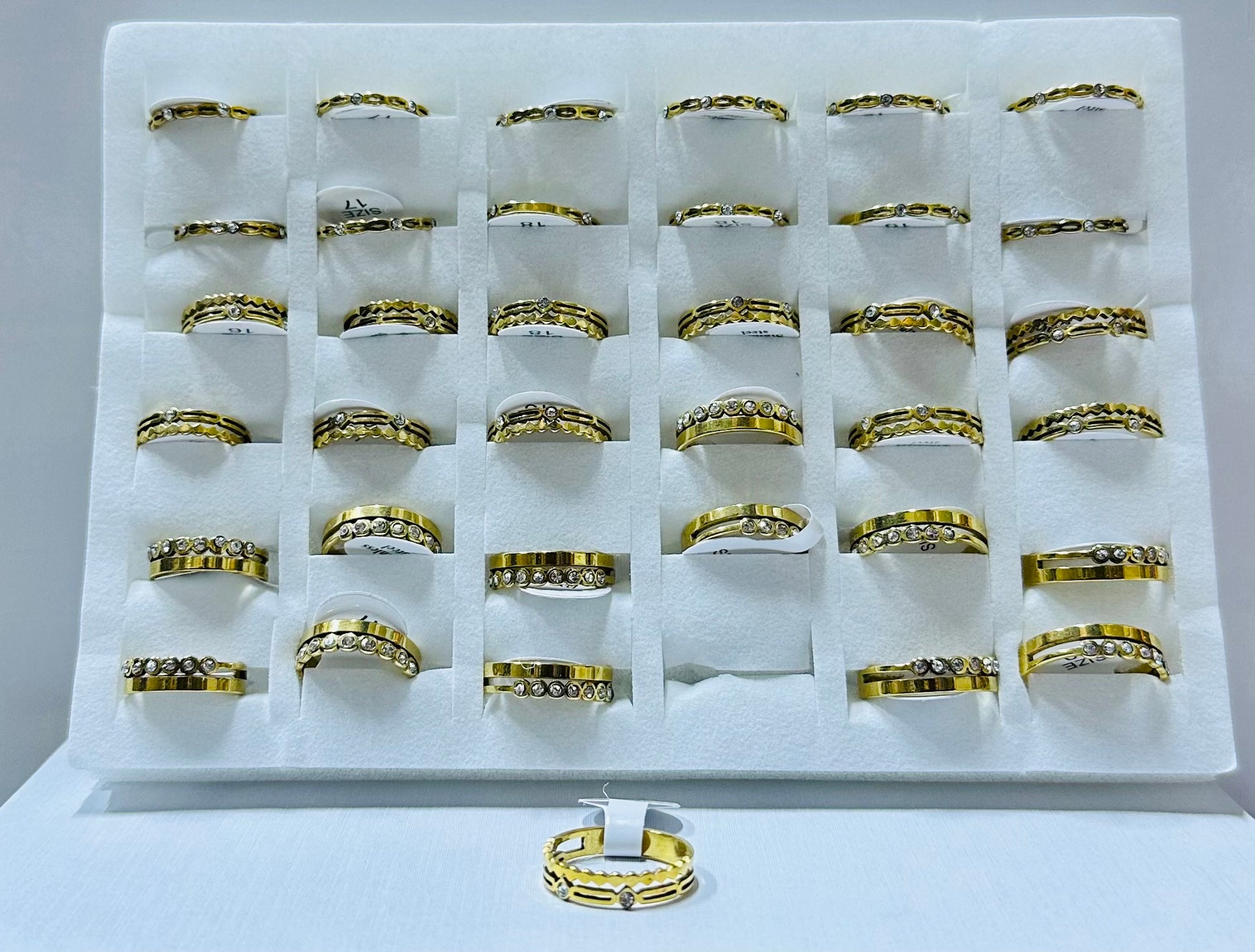 Anillo dorado con piedra (por 36 und) talla 16-20